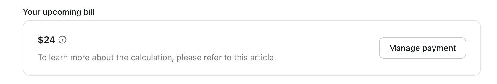 In the console, you'll find a "Your next bill" section in the tenant setting section, where you can monitor and control your upcoming charges.